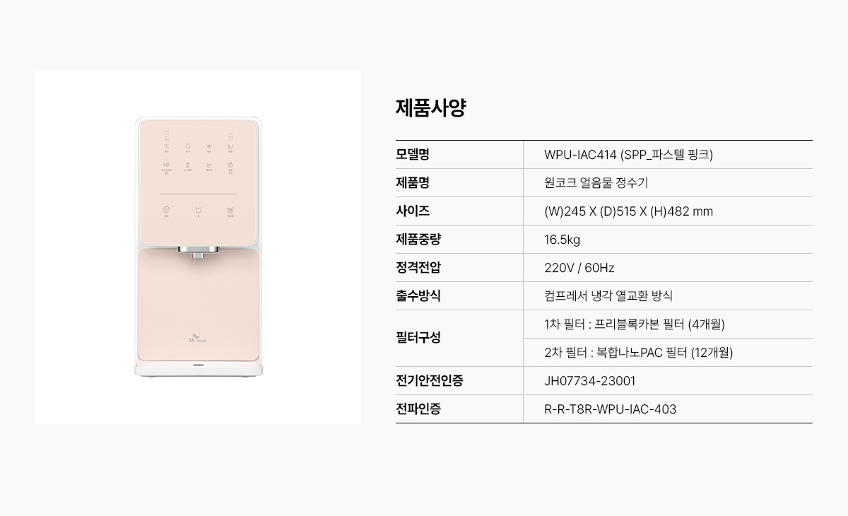 [SK매직] 24년형 원코크 얼음물 정수기 WPU-IAC414SPP 렌탈 / 자가관리 / 의무사용72개월 / 등록설치비면제