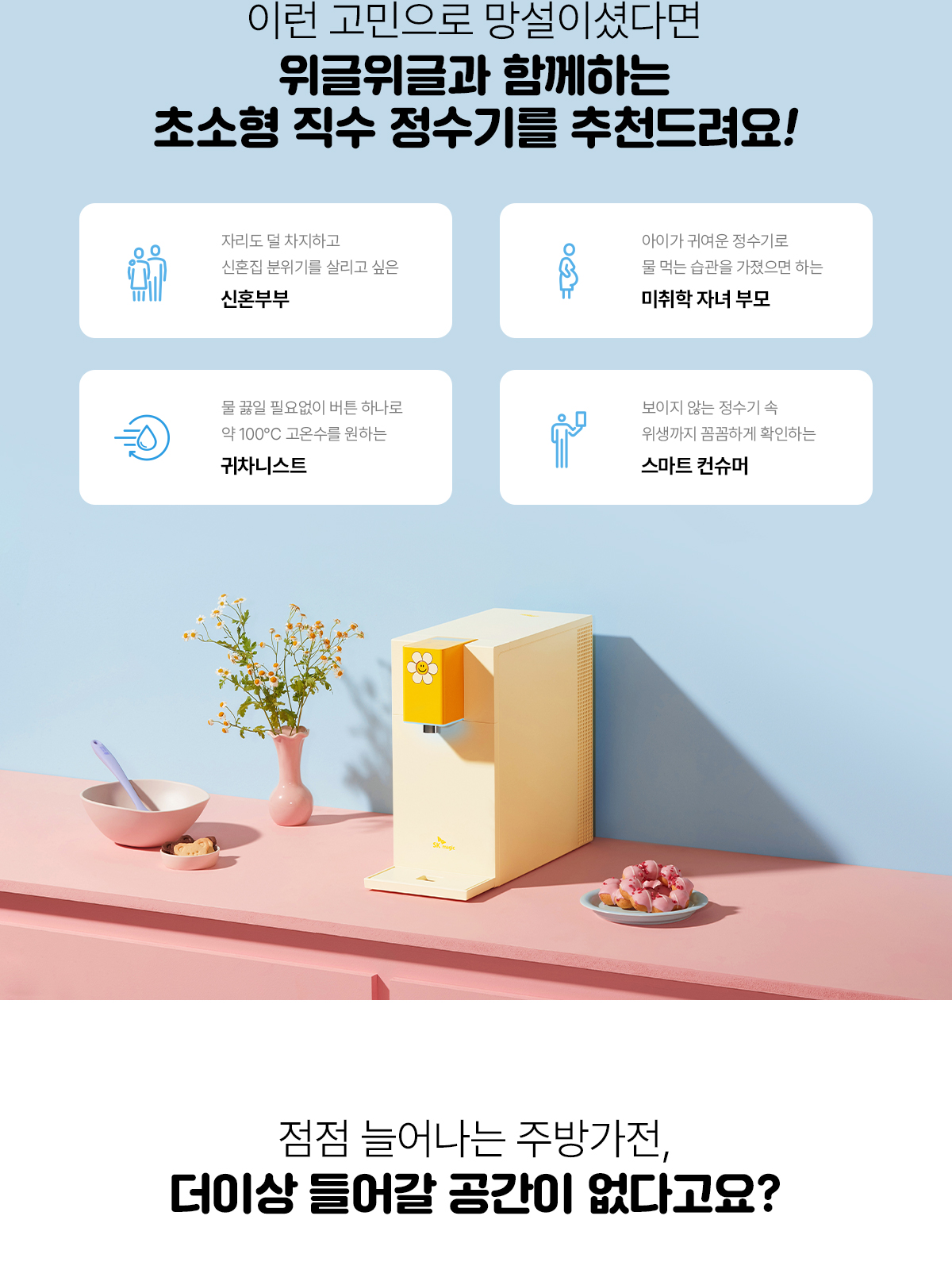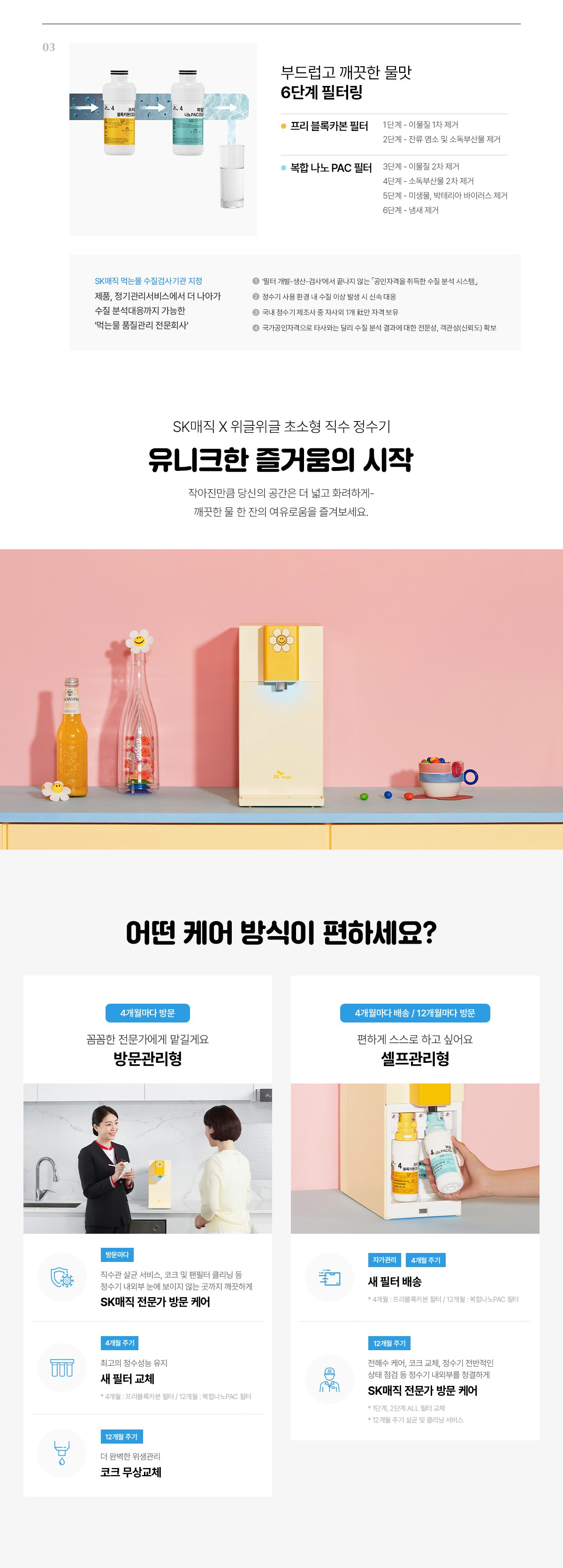[SK매직]SK매직X위글위글 초소형 직수 정수기 WPU-JAC104SWW 렌탈 / 자가관리 / 의무사용84개월 / 등록설치비면제