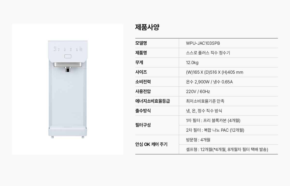 [SK매직] 스스로 플러스 직수 정수기 WPU-JAC103SPB / 방문관리 / 의무사용72개월 / 등록설치비면제