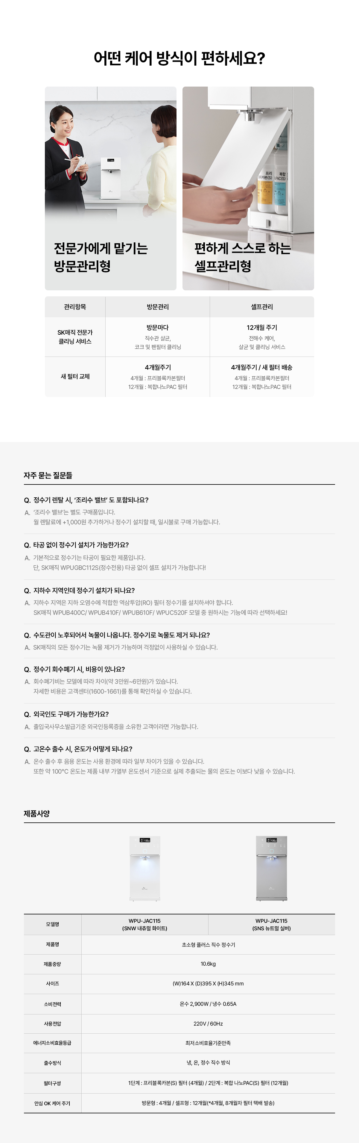 [SK매직] 초소형 직수 플러스 정수기 WPU-JAC115SNW 렌탈 / 자가관리 / 의무사용84개월 / 등록설치비면제