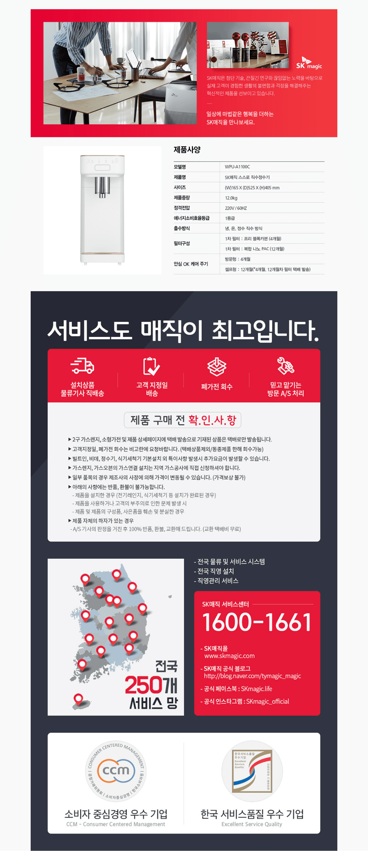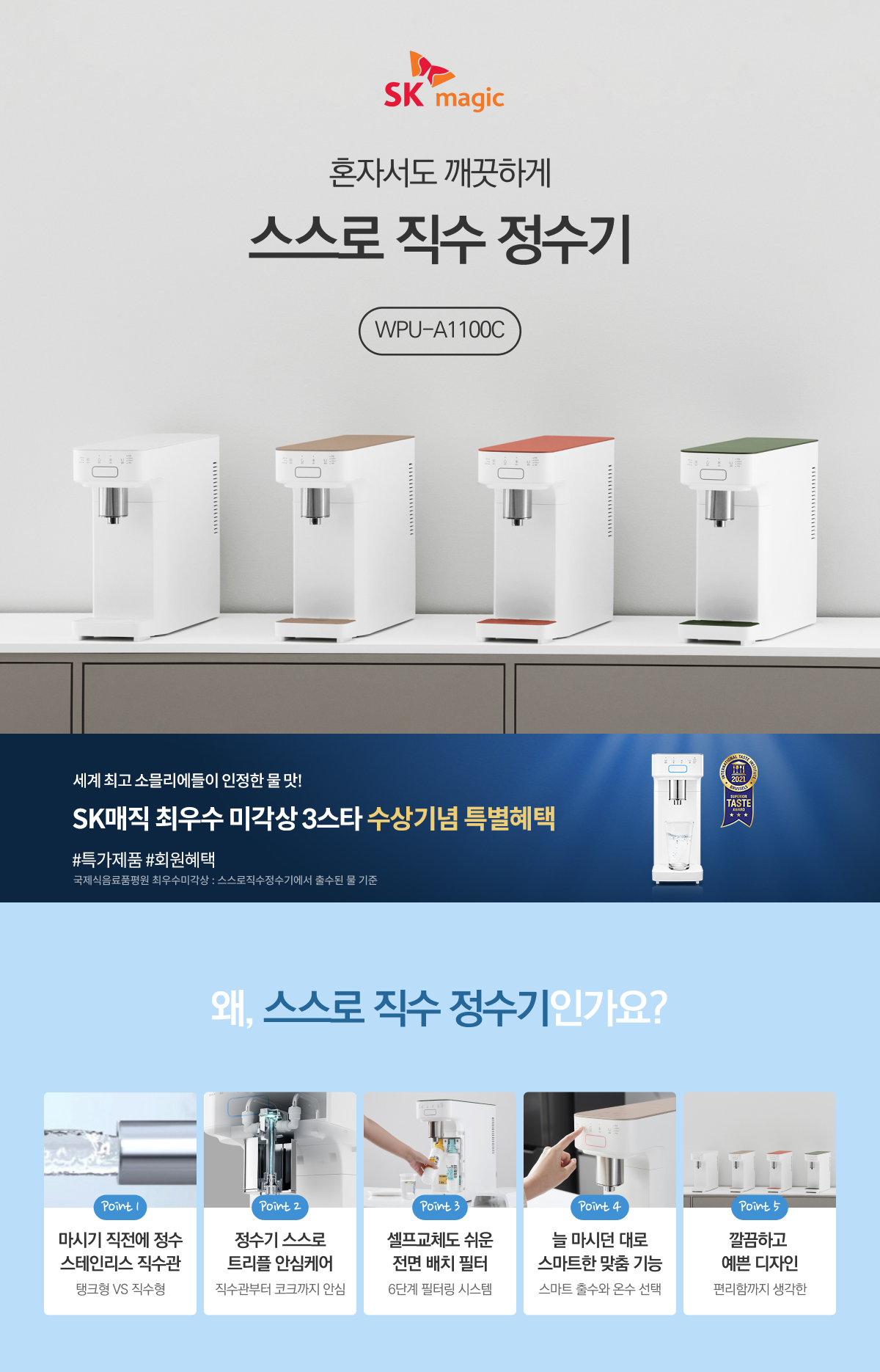 [SK매직] 스스로 직수 냉온정수기 WPU-A1100C 렌탈 / 자가관리 / 의무사용48개월 / 등록설치비면제
