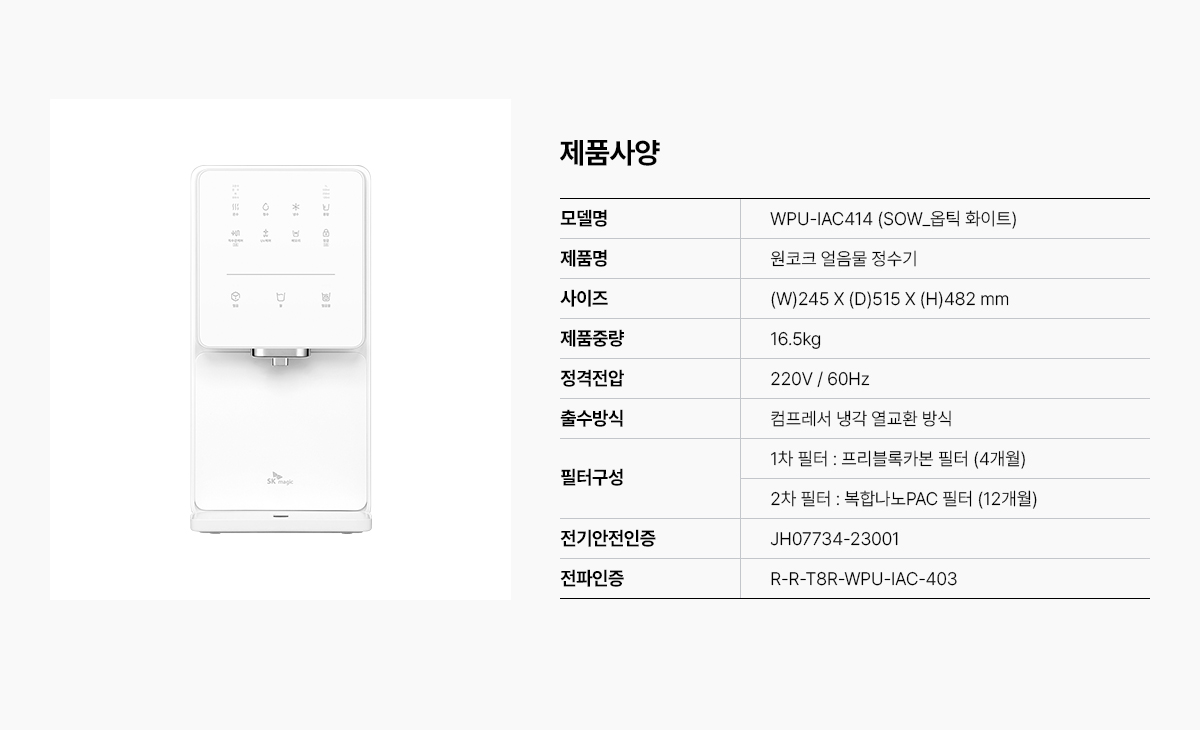 [SK매직] 24년형 원코크 얼음물 정수기 WPU-IAC414S 렌탈 / 방문관리 / 의무사용72개월 / 등록설치비면제