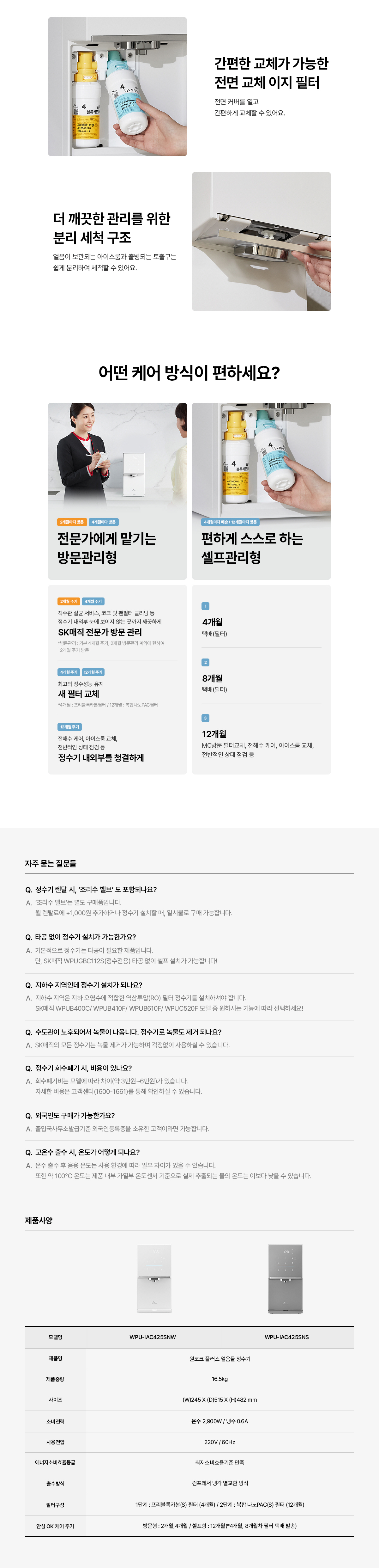 [SK매직] 25년형 원코크 플러스 정수기 WPU-IAC425SNS 렌탈 / 방문관리 / 의무사용72개월 / 등록설치비면제