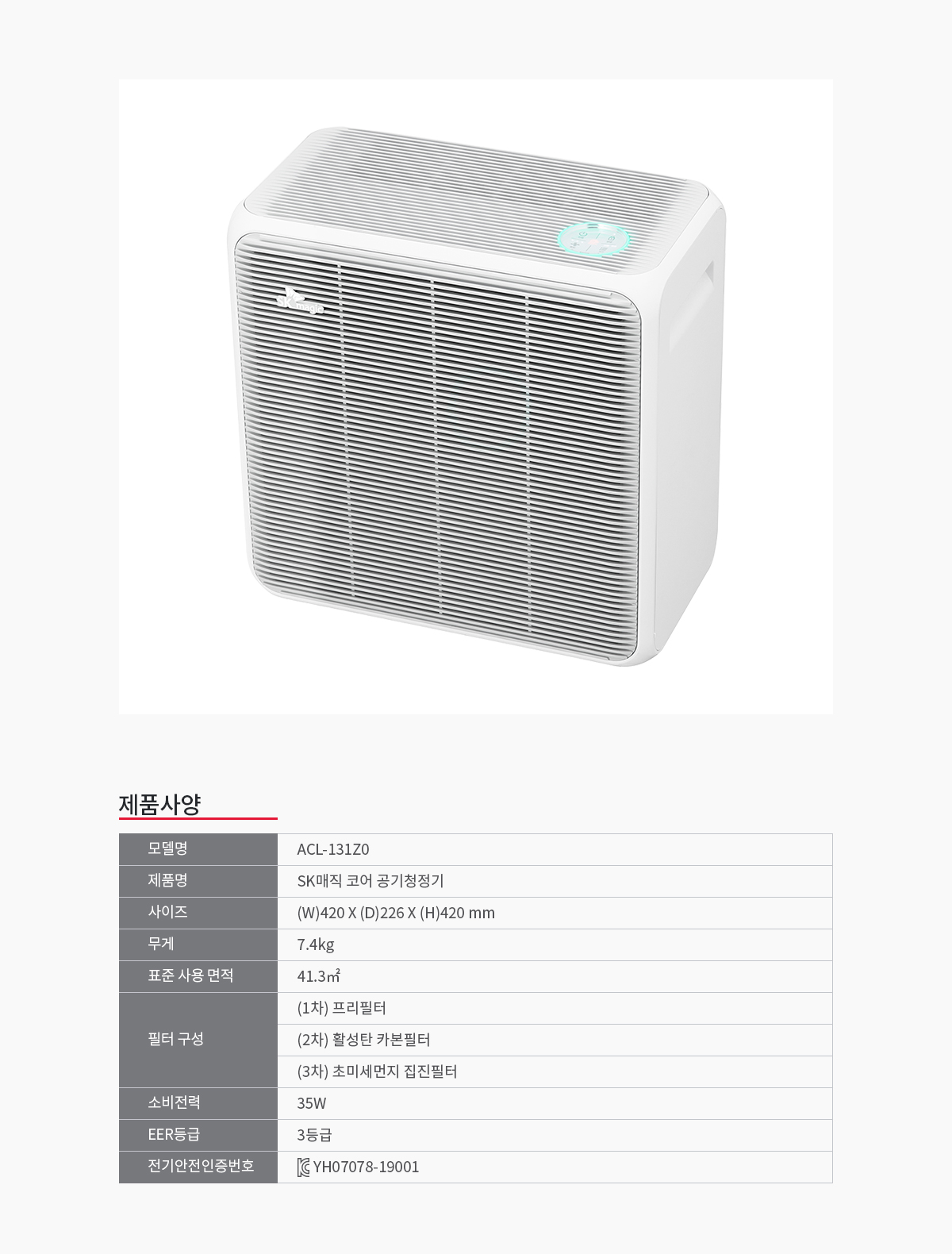 [SK매직] 코어 공기청정기 13평형 ACL-131Z0 렌탈 / 자가관리 / 의무사용60개월 / 등록설치비면제