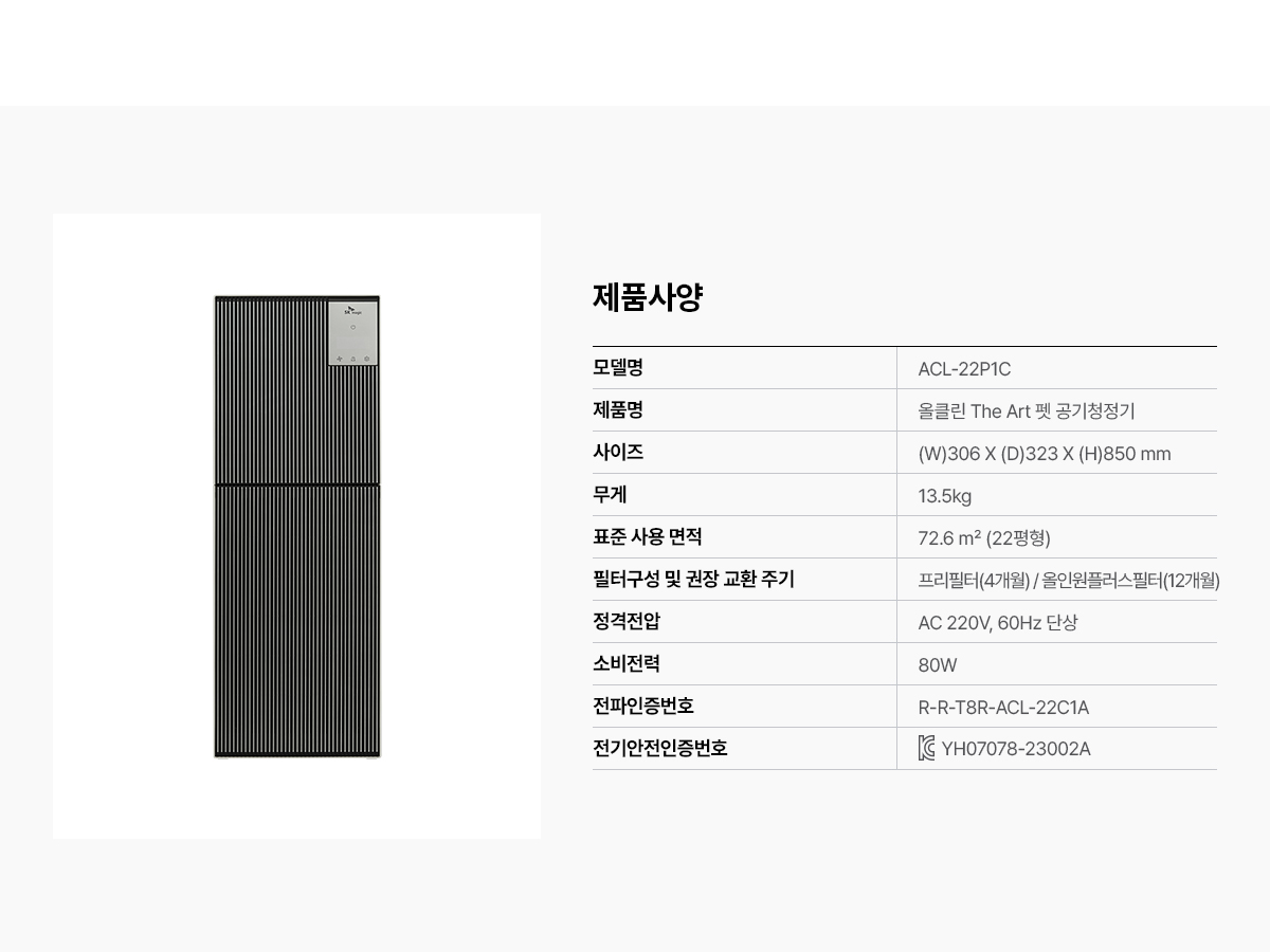 [SK매직] 올클린 디아트 펫 공기청정기 22평형 ACL-22P1C 렌탈 / 자가관리 / 의무사용84개월 / 등록설치비면제