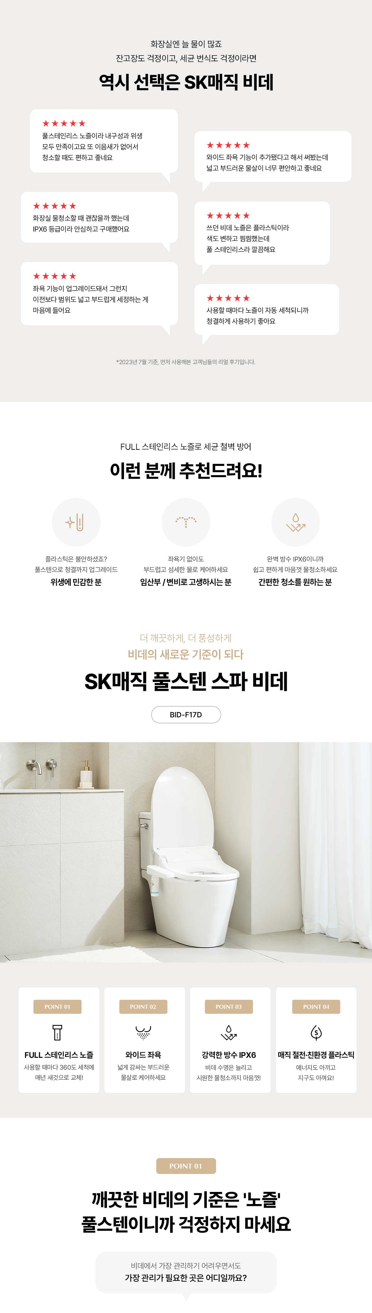 [SK매직]풀스텐 스파 비데 BID-F17D 렌탈 / 자가관리 / 의무사용60개월 / 등록설치비면제