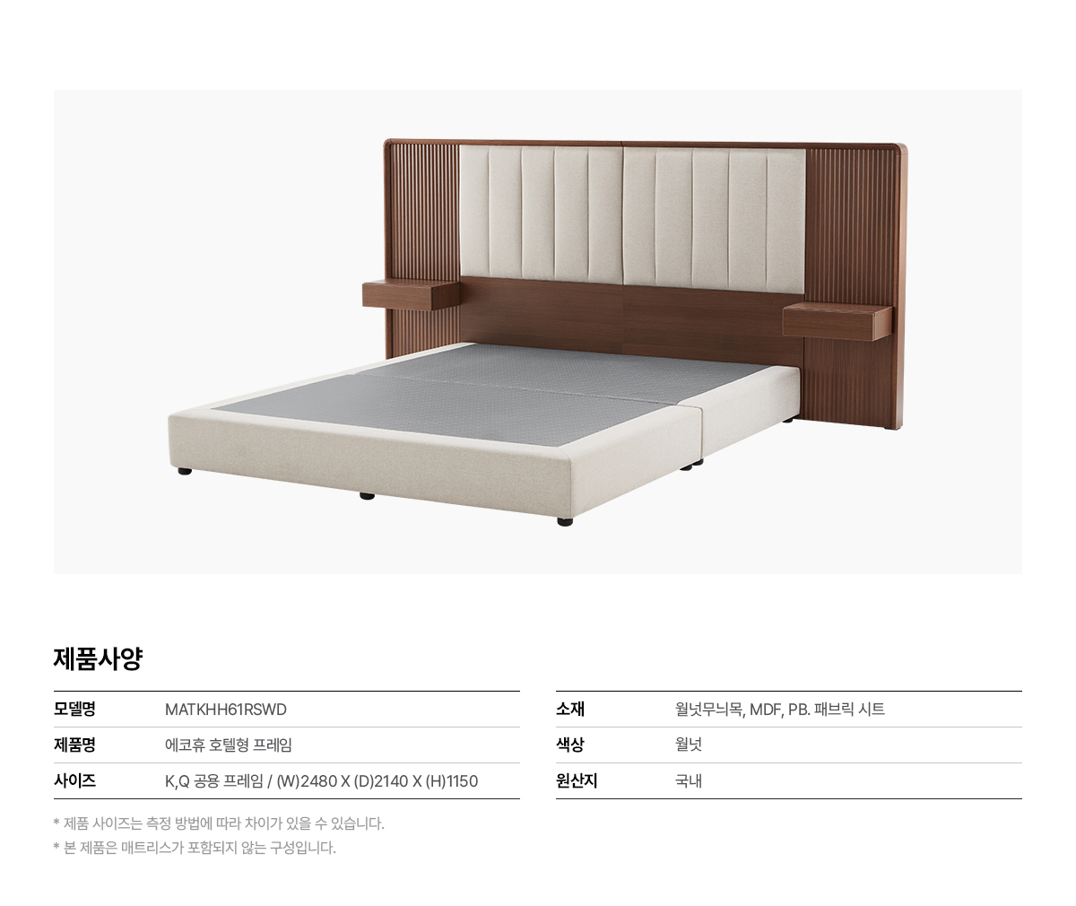 -단일 모델운영(KING SIZE 165cm) : 매트리스 퀸, 킹 사이즈 호환 가능