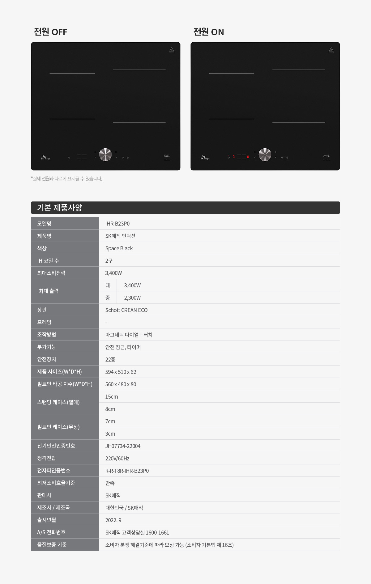 [SK매직] 보더리스 라이트 인덕션 레인지 2구 IHR-B23P0 렌탈 / 자가관리 / 의무사용60개월 / 등록설치비면제
