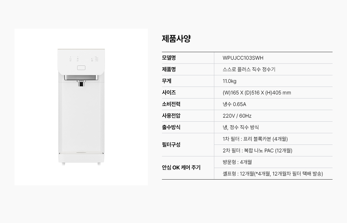 [SK매직] 스스로 플러스 직수 정수기 WPU-JCC103 / 자가관리 / 의무사용72개월 / 등록설치비면제