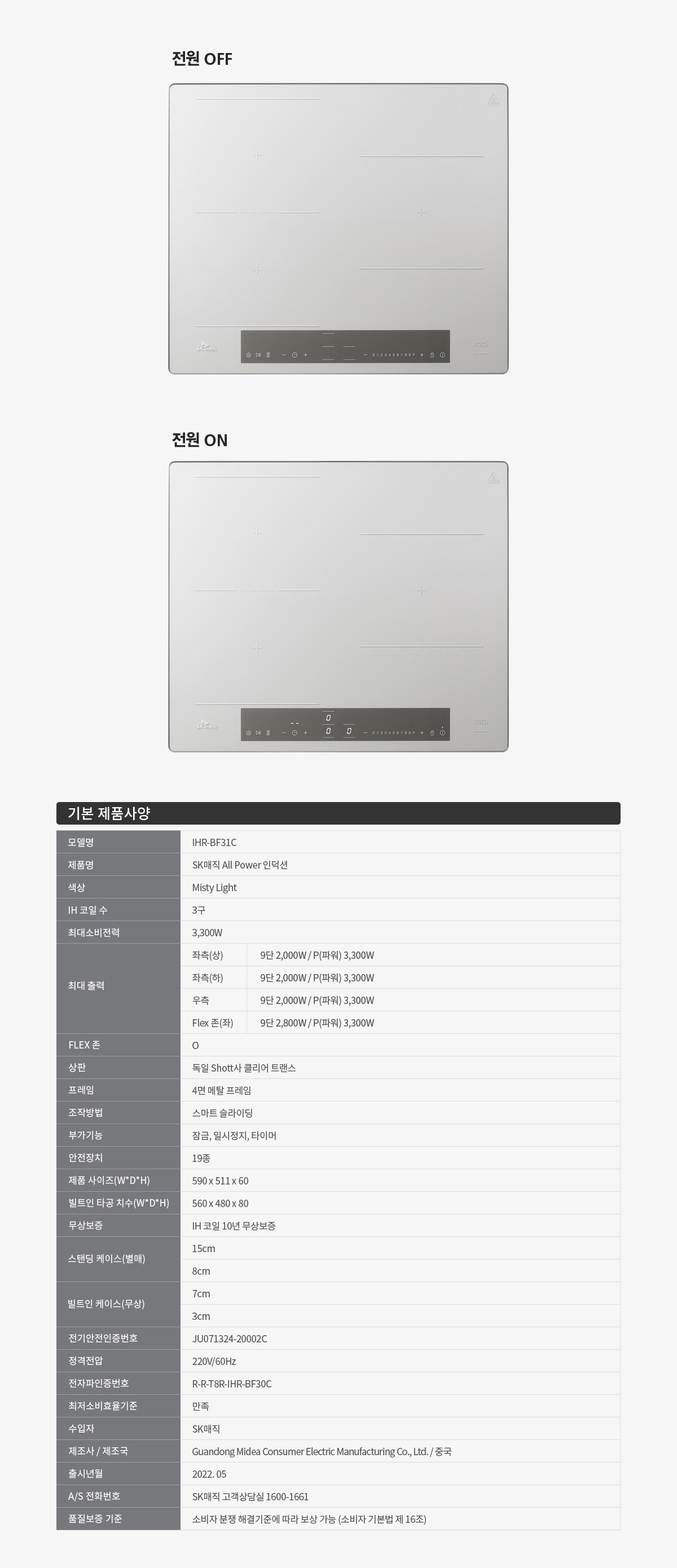 [SK매직] 올파워 전기레인지 3구 IHR-BF31C 렌탈 / 자가관리 / 의무사용60개월 / 등록설치비면제